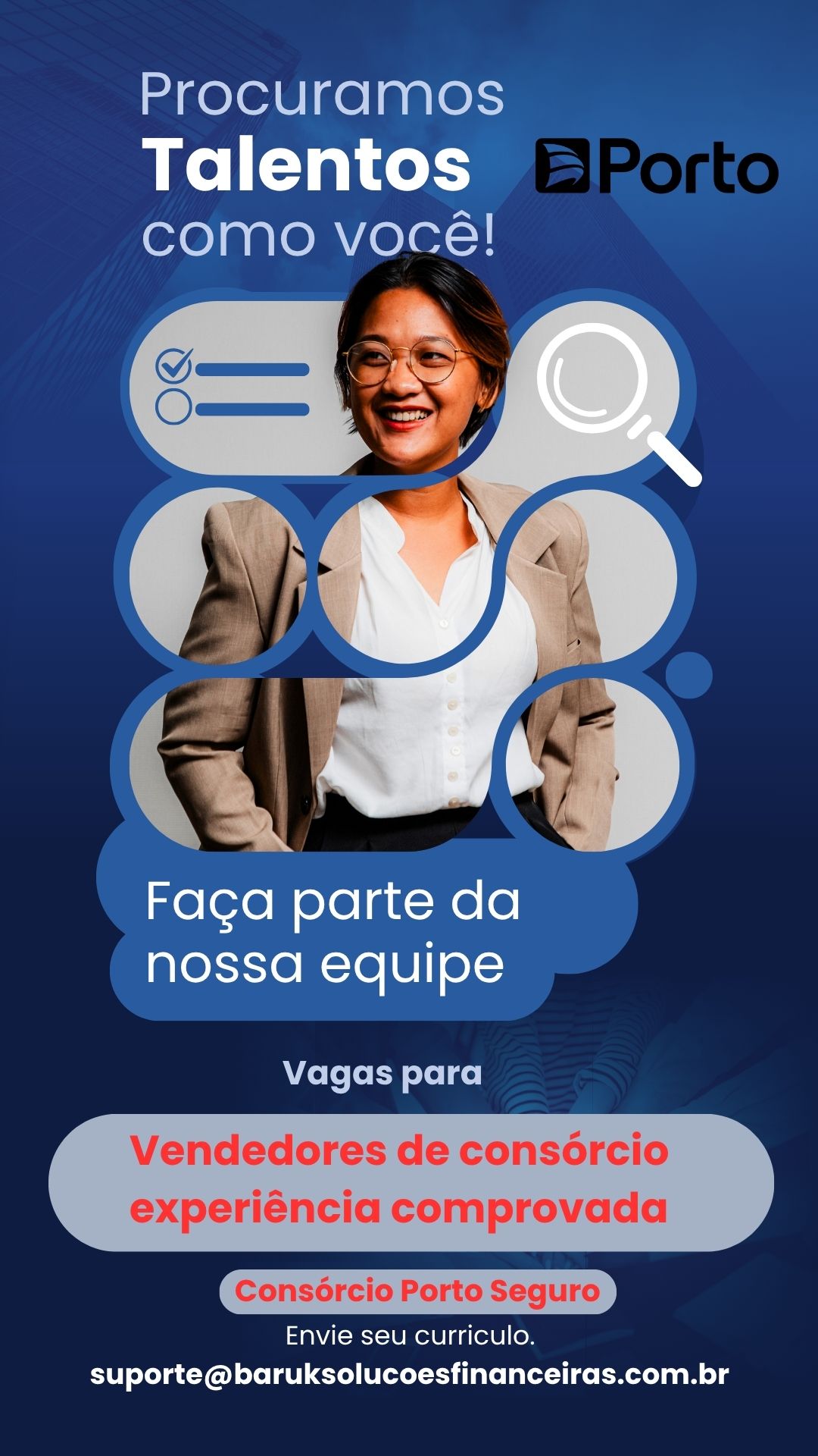 Buscamos profissionais comprometidos, com boa comunicação e disposição para trabalhar em equipe.