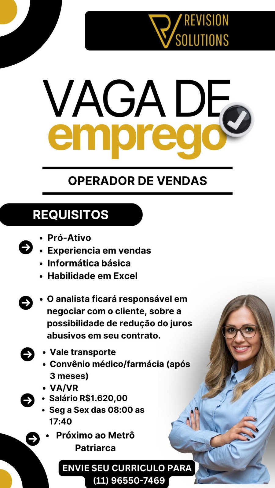 VAGA DE EMPREGO – CONSULTOR(A) DE VENDAS | MOOCA – SÃO PAULO/SP