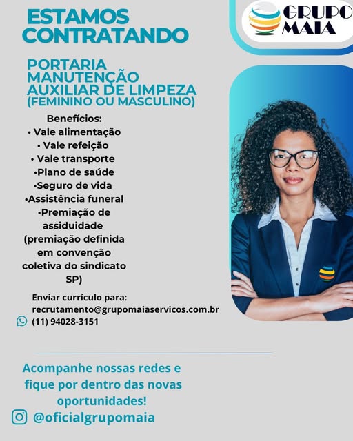 Envio de currículo: agentedeportaria2206@gmail.com