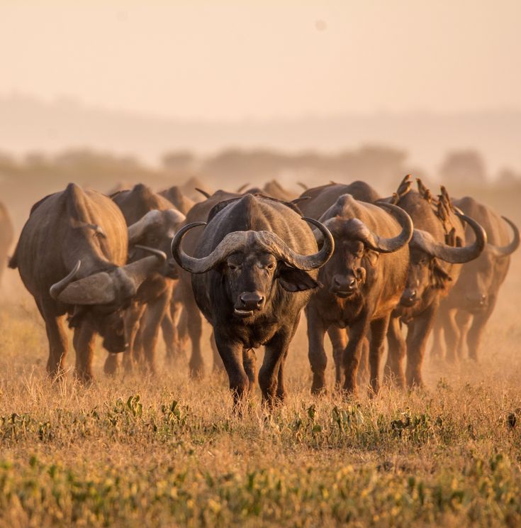 Os chifres dos búfalos africanos formam uma “cimeira” dura no centro da cabeça — uma verdadeira armadura natural.