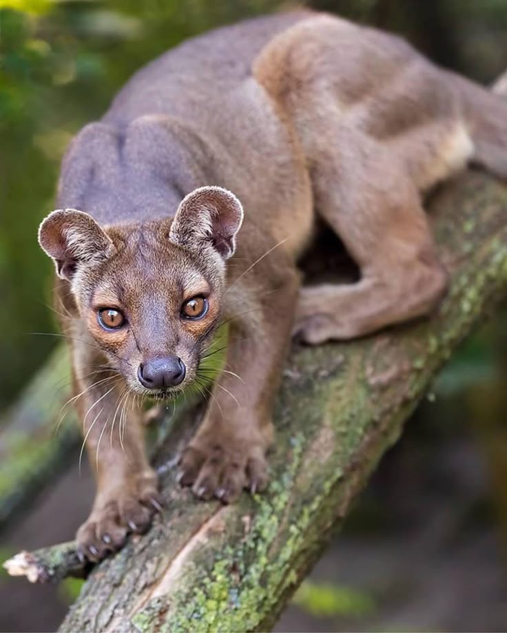 1️⃣ A fossa é um mamífero carnívoro que vive exclusivamente na ilha de Madagascar. Apesar de parecer um felino, ela está mais próxima geneticamente dos mangustos.